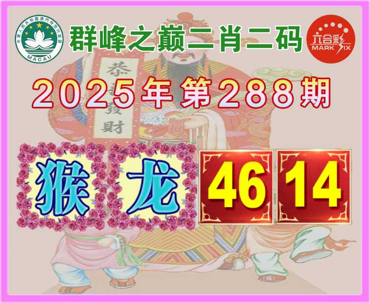 288期:【群峰之巅】 二肖二码【猴】【46.14】开:龙14