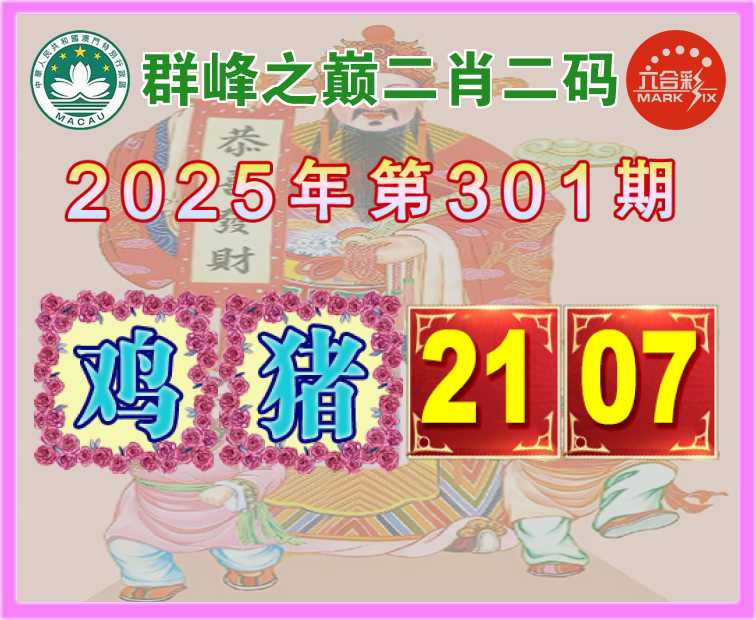 301期:【群峰之巅】 二肖二码【鸡猪】【21.07】开:牛05