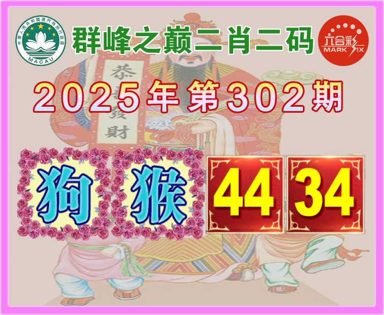 302期:【群峰之巅】 二肖二码【狗】【44.34】开:猴22