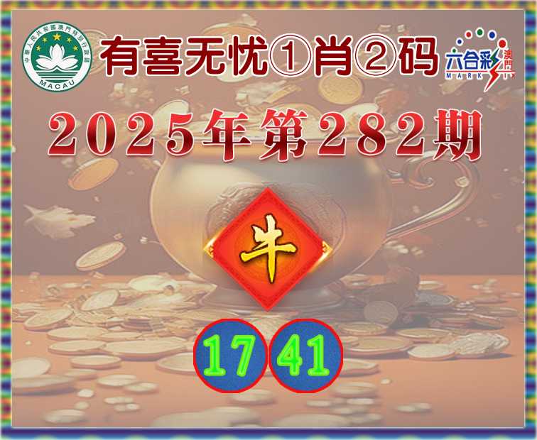 282期:《有喜无忧》 ①肖②码】【17.41】开:牛41