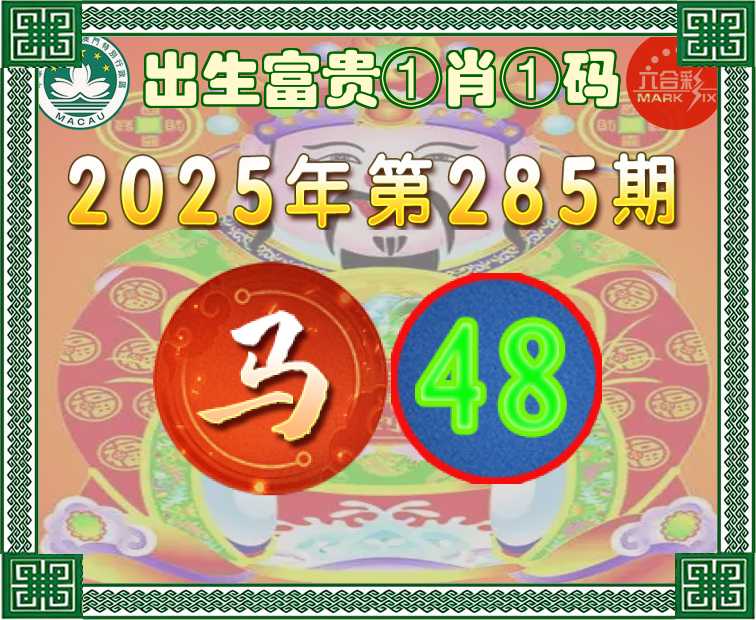 285期:『出生富贵』 ①肖①码】【48】开:马24