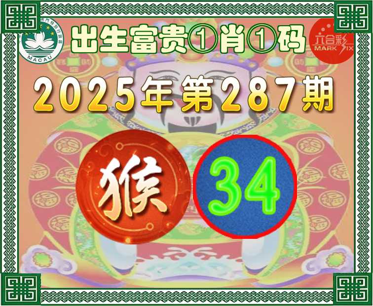 287期:『出生富贵』 ①肖①码】【34】开:猴34