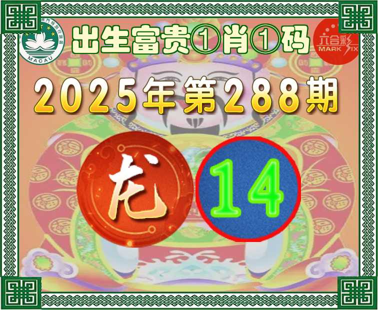 288期:『出生富贵』 ①肖①码】【14】开:龙14