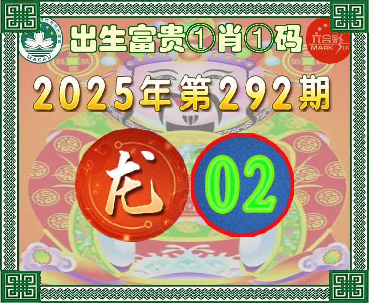 292期:『出生富贵』 ①肖①码】【02】开:龙02