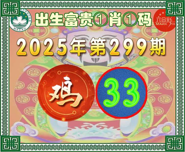 299期:『出生富贵』 ①肖①码【鸡】【33】开:蛇49