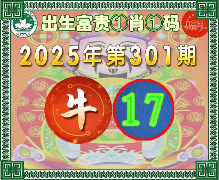301期:『出生富贵』 ①肖①码】【17】开:牛05
