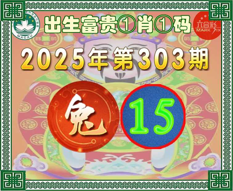 303期:『出生富贵』 ①肖①码】【15】开:兔15