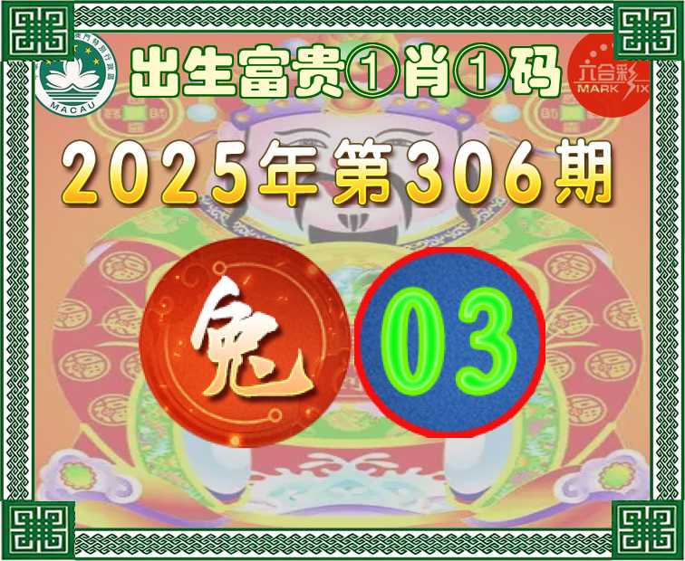 306期:『出生富贵』 ①肖①码【兔】【03】开:牛17