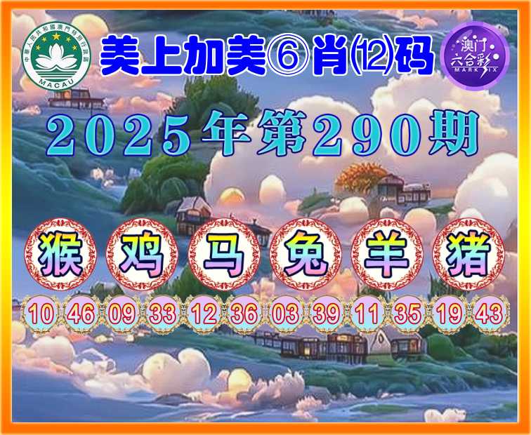 290期: 『美上加美』 ⑥肖⑿码【猴鸡马兔羊】开:猪19