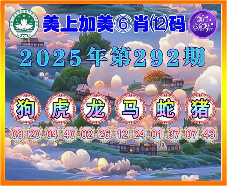 292期: 『美上加美』 ⑥肖⑿码【狗虎马蛇猪】开:龙02