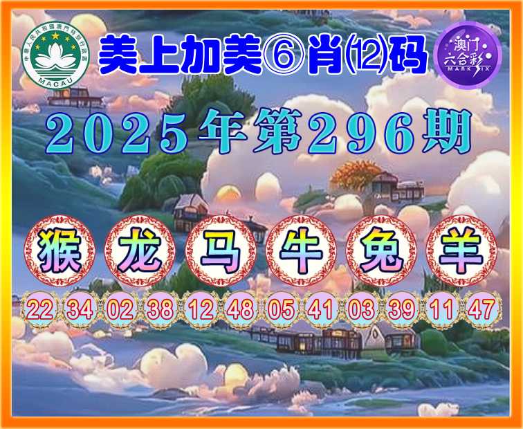 296期: 『美上加美』 ⑥肖⑿码龙马牛兔羊】开:猴22