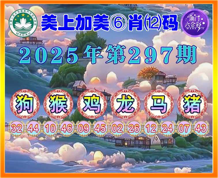 297期: 『美上加美』 ⑥肖⑿码猴鸡龙马猪】开:狗44