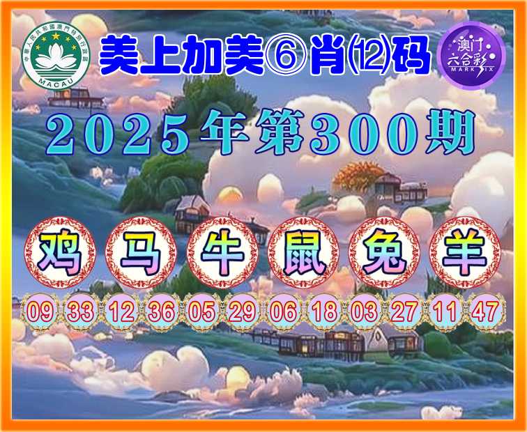 300期: 『美上加美』 ⑥肖⑿码【鸡马牛鼠兔羊】开:虎40