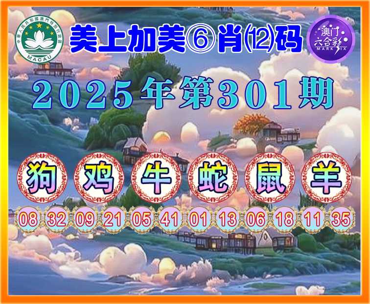301期: 『美上加美』 ⑥肖⑿码【狗鸡蛇鼠羊】开:牛05