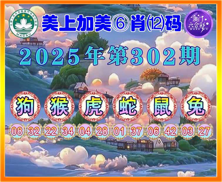 303期: 『美上加美』 ⑥肖⑿码【猴龙马蛇羊】开:兔15