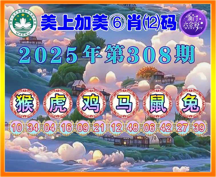 308期: 『美上加美』 ⑥肖⑿码【猴虎鸡马鼠】开:兔39